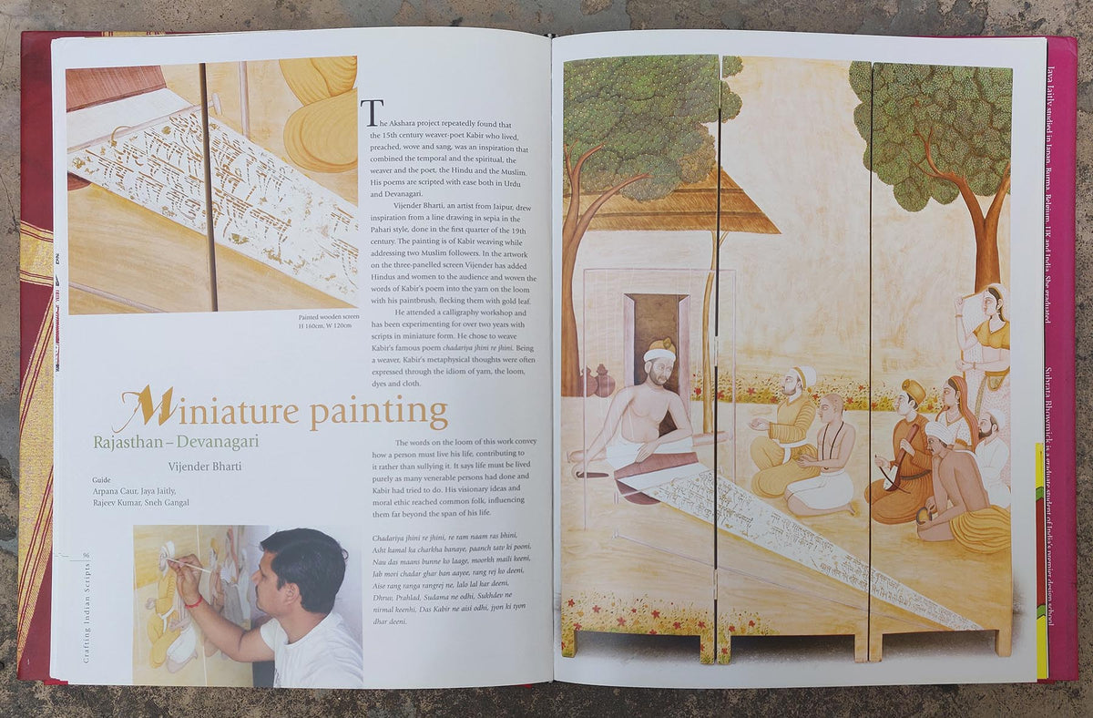 Crafting Indian Scripts is a beautifully designed book that explores the rich aesthetics of India’s regional scripts through the lens of calligraphy and craft. It showcases over a hundred handcrafted collector-pieces, blending traditional scripts with textile, paper, and craft art. The book grew out of the Akshara project, which united 58 craft-producer groups across India to experiment with writing as design. It highlights how calligraphy and lettering can be both a craft and a means of preserving linguistic heritage. The visual presentation is deeply rooted in India’s cultural diversity, featuring pieces in multiple vernacular scripts, each rendered as art.