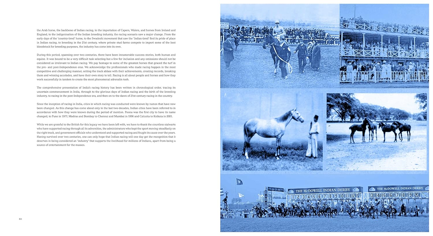 Charting the hitherto untold story of Indian horse racing, Horse Racing in India: A Royal Legacy is a monumental effort to etch the highlights of Indian racing. It recalls, with its exquisitely detailed content and breathtaking photographs, the luster and old charm of the sport as it used to be, and testifies to the passion that is still held for horse racing in India.