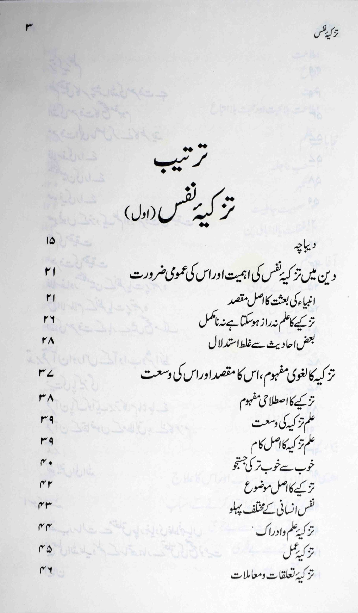 Tazkiya e Nafs (تذکیۂ نفس)* is a profound book that focuses on the purification of the soul and the inner spiritual development of a believer. It emphasizes self-discipline, moral refinement, and the cleansing of the heart from worldly desires and negative traits. Drawing upon Qur’anic teachings and prophetic traditions, the book guides readers toward attaining sincerity, humility, and closeness to Allah. It serves as a spiritual roadmap for anyone seeking inner peace and a stronger connection with their Creator.