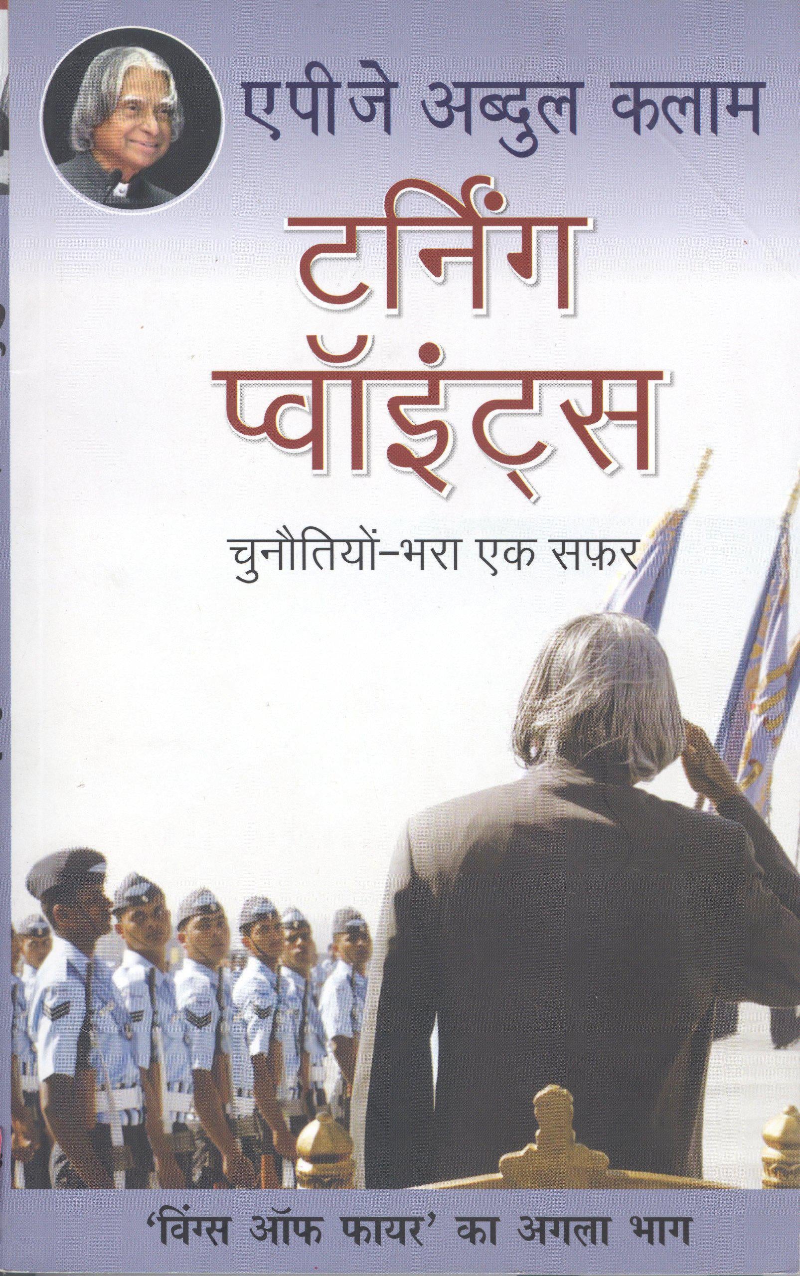 ‘‘वह एक सामान्य-सा दिन था - चेन्नई की अन्ना यूनिवर्सिटी के परिसर में ‘संकल्पना से लक्ष्य तक’ विषय पर मेरा एक व्याख्यान हुआ था जो एक घंटे से बढ़ कर दो घंटे का हो गया था। उसके बाद मैंने शोध छात्रों के साथ भोजन किया और फिर क्लास में गया। शाम को जब अपने कमरे में लौट रहा था, वाइस-चांसलर प्रोफेसर ए. कलानिधि भी मेरे साथ थे। उन्होंने मुझे बताया कि दिन भर कोई मुझसे संपर्क करने की कोशिश करता रहा। जैसे ही मैं कमरे में घुसा, फ़ोन बज रहा था। फ़ोन उठाने पर उधर से आवाज़ आई, ‘प्रधानमंत्री आपसे बात करना चाहते हैं। कुछ ही महीने पहले मैंने कैबिनेट स्तर का मुख्य वैज्ञानिक सलाहकार का अपना पद छोड़ा था ताकि मैं अध्यापन के अपने काम की ओर लौट सकूँ। जैसे ही मैंने प्रधानमंत्री अटल बिहारी वाजपेयी से बात की, मेरे जीवन ने एक नया मोड़ लिया।’’ ‘टर्निंग प्वाइंट्स’ पूर्व राष्ट्रपति कलाम की अतुल्य कहानी है जो वहाँ से शुरू होती है, जहाँ उनकी आत्मकथा का पहला भाग ‘विंग्स आफ फायर’ ठहर गया था। यह कहानी उनके जीवन और राष्ट्रपतित्व-काल के कुछ ऐसे पहलू उजागर करती है जो अब तक अनजाने रहे हैं। कई विवादास्पद मुद्दों पर भी पहली बार उन्होंने अपना बयान दिया है। यह केवल एक असाधारण व्यक्ति की जीवन-गाथा नहीं है, बल्कि एक संकल्पना का दर्शन भी है कि कैसे एक भव्य विरासत वाला देश, अपनी दक्षता, योग्यता, प्रयास और दृढ़ विश्वास के सहारे महान बन सकता है। देश-विदेश के लाखों युवाओं के आदर्श और प्रेरणास्रोत, भ्पामत के ग्यारहवें राष्ट्रपति ए.पी.जे. अब्दुल कलाम सर्वाधिक लोकप्रिय रहे हैं। उनकी लिखी पुस्तकंे ‘विंग्स आॅफ फायर’, ‘इनडोमिटेबल स्पिरिट’, ‘स्पिरिट आफ इंडिया’, ‘इग्नाइटिड माइंड्स’ बैस्टसैलर रही हैं।