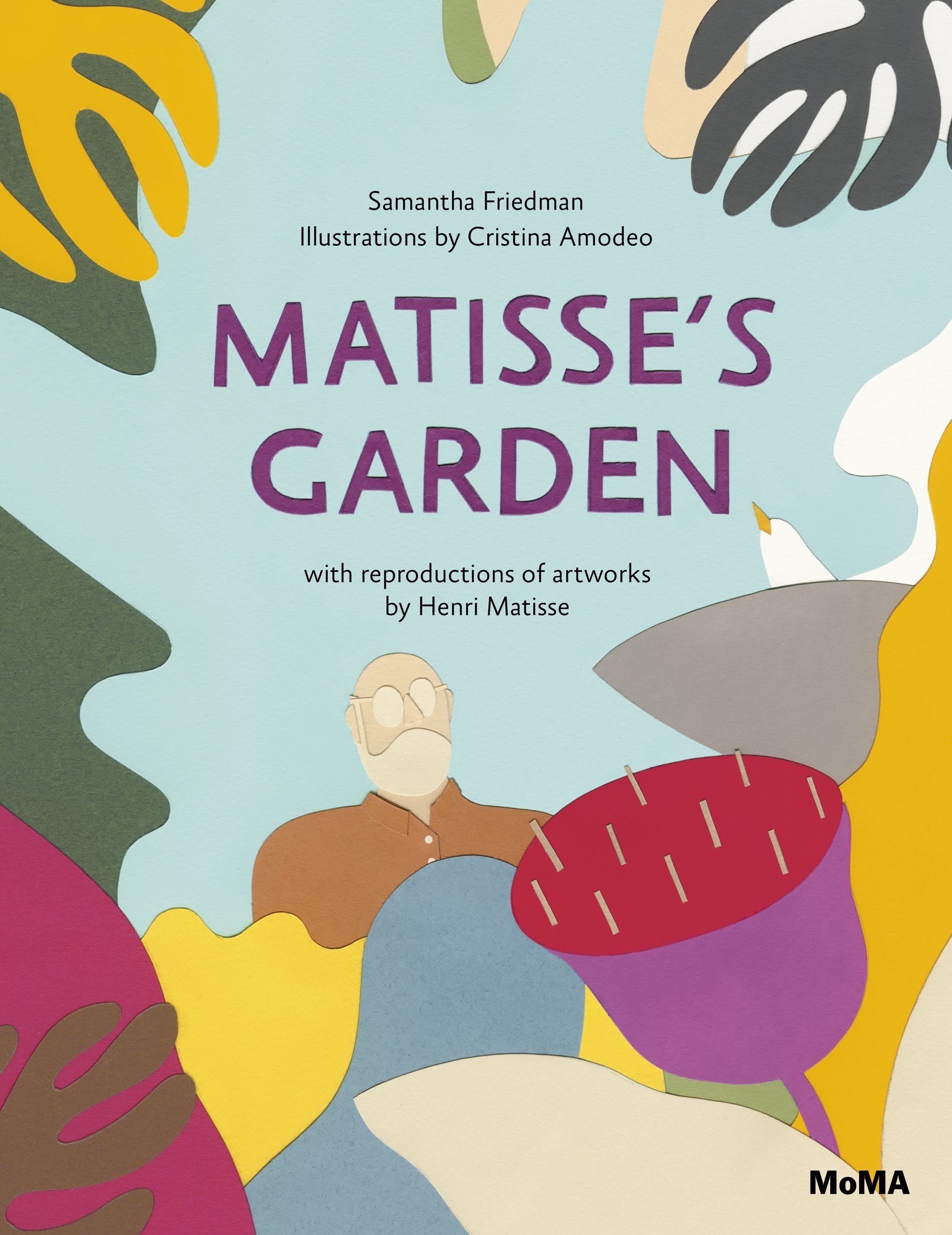One day, Henri Matisse (1869–1954) cut a small bird out of a piece of white paper. It was a simple shape, but he liked the way it looked and didn’t want to throw it away, so he pinned it to the wall of his room. But the bird looked lonely all by itself, so he cut out more shapes to join it, and before he knew it, he had transformed his walls into larger-than-life gardens filled with brightly coloured plants and animals and shapes of all sizes. Featuring colourful cut-paper illustrations and Matisse’s own cut-outs, Matisse’s Garden is the inspiring story of how the artist’s never-ending curiosity and continuous process of trying new things helped turn a small experiment into a radical new form of art. Children will see how Matisse used nothing but paper and scissors to create simple shapes like squares, leaves and birds, and experimented with scraps of leftover paper and new colour combinations to create lush gardens on his studio walls.