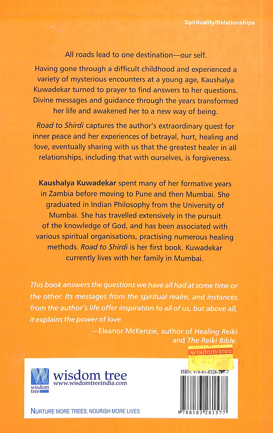 Road to Shirdi: A Journey of Mysterious Encounters & Awakening is a 2010 book by Kaushalya Kuwadekar, published by Wisdom Tree. The book chronicles the author's personal quest for inner peace, highlighting experiences of betrayal, hurt, healing, and love, and ultimately emphasizing forgiveness as a key to healing relationships with oneself and others