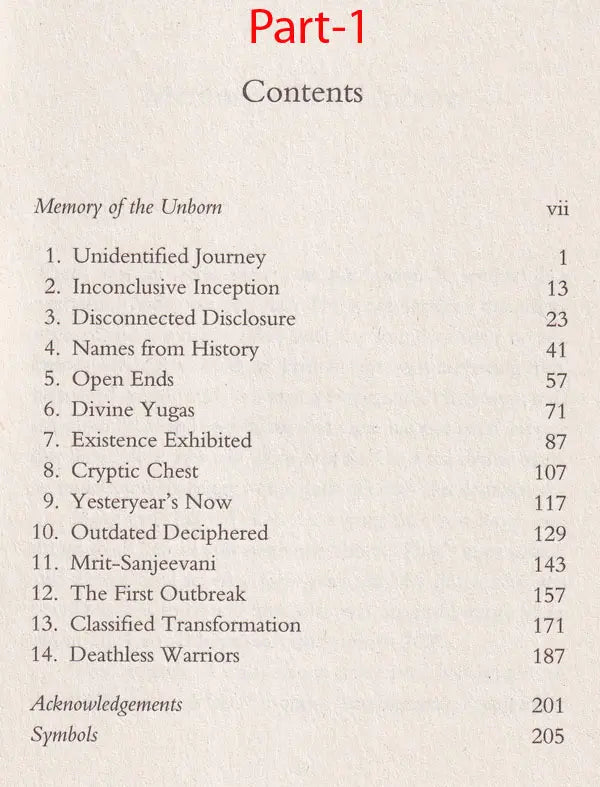 Prithvi, a twenty-one-year-old, is searching for a mysterious middle-aged Aghori, Om Shastri, who was captured and transported to a high-tech facility on an isolated Indian island. When the Aghori was drugged and hypnotized for interrogation by a team of specialists, he claimed to have witnessed all four yugas (the epochs in Hinduism) and participated in the events of both the Ramayana and the Mahabharata. Om's revelations of his incredible past that defied the laws of mortality left everyone baffled.